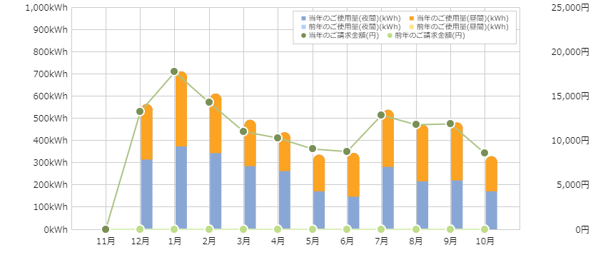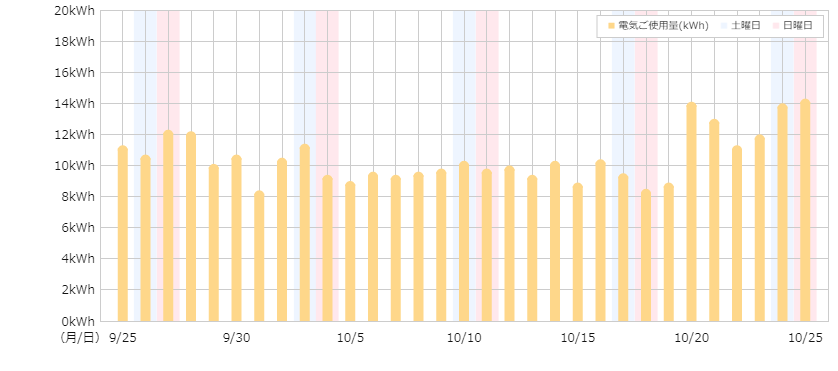 ・請求期間の前半は、天気が良く外気温と室温が高い時にスポット的に冷房(2階AC)を使用しました。