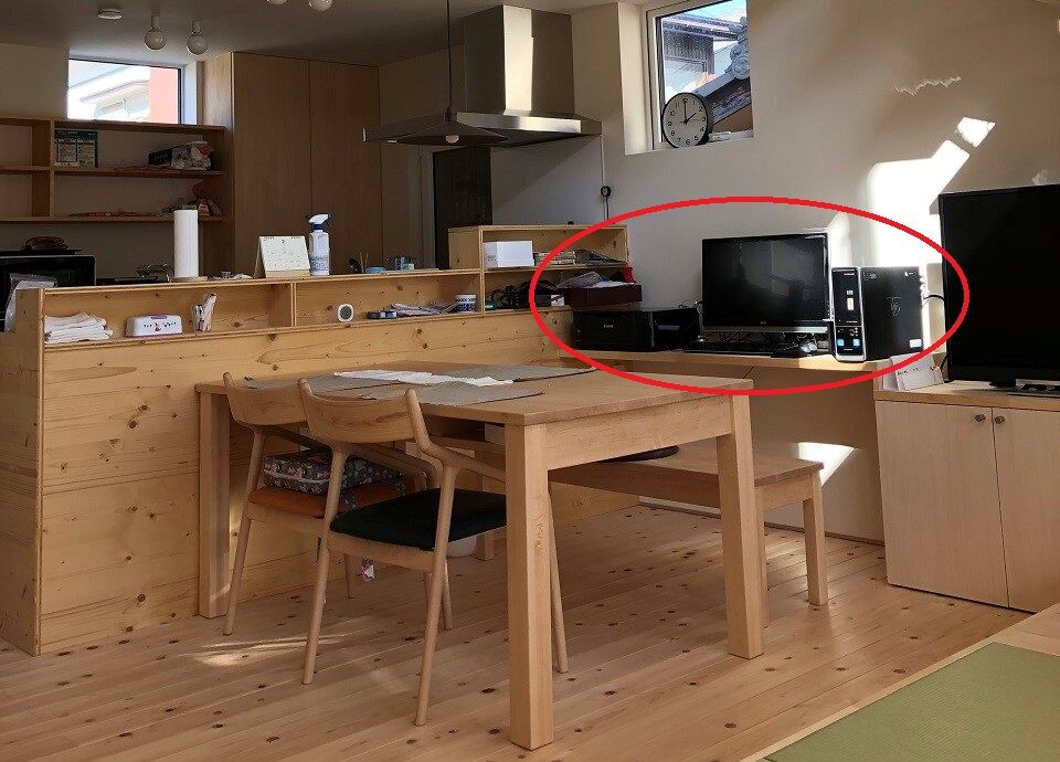 元々デスクトップPCを置いていたスペースは小学生になった長男のランドセル置き場のために使うことにして、デスクトップPCは床下へ移動しテレワーク用として活用することになりました。